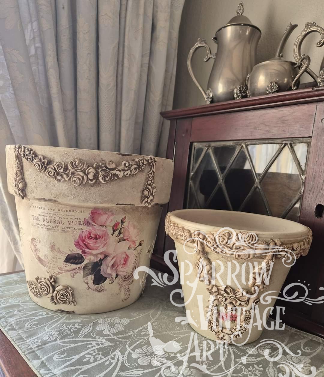 One of the fabulous advantages of Sparrow Vintage Art Antiquing Glaze, is it can be used on wet air-dry clay to enhance the recessed details of embellishments.