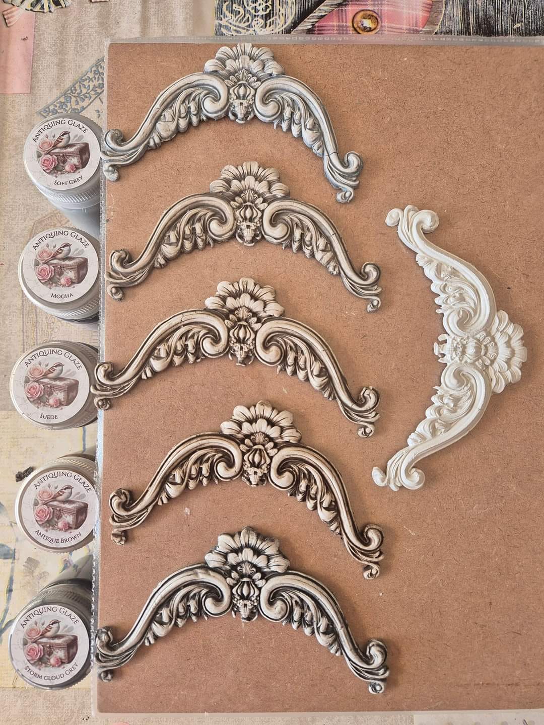 These Glazes add an antique finish and enhances the recessed detail on moulded and resin embelishments.