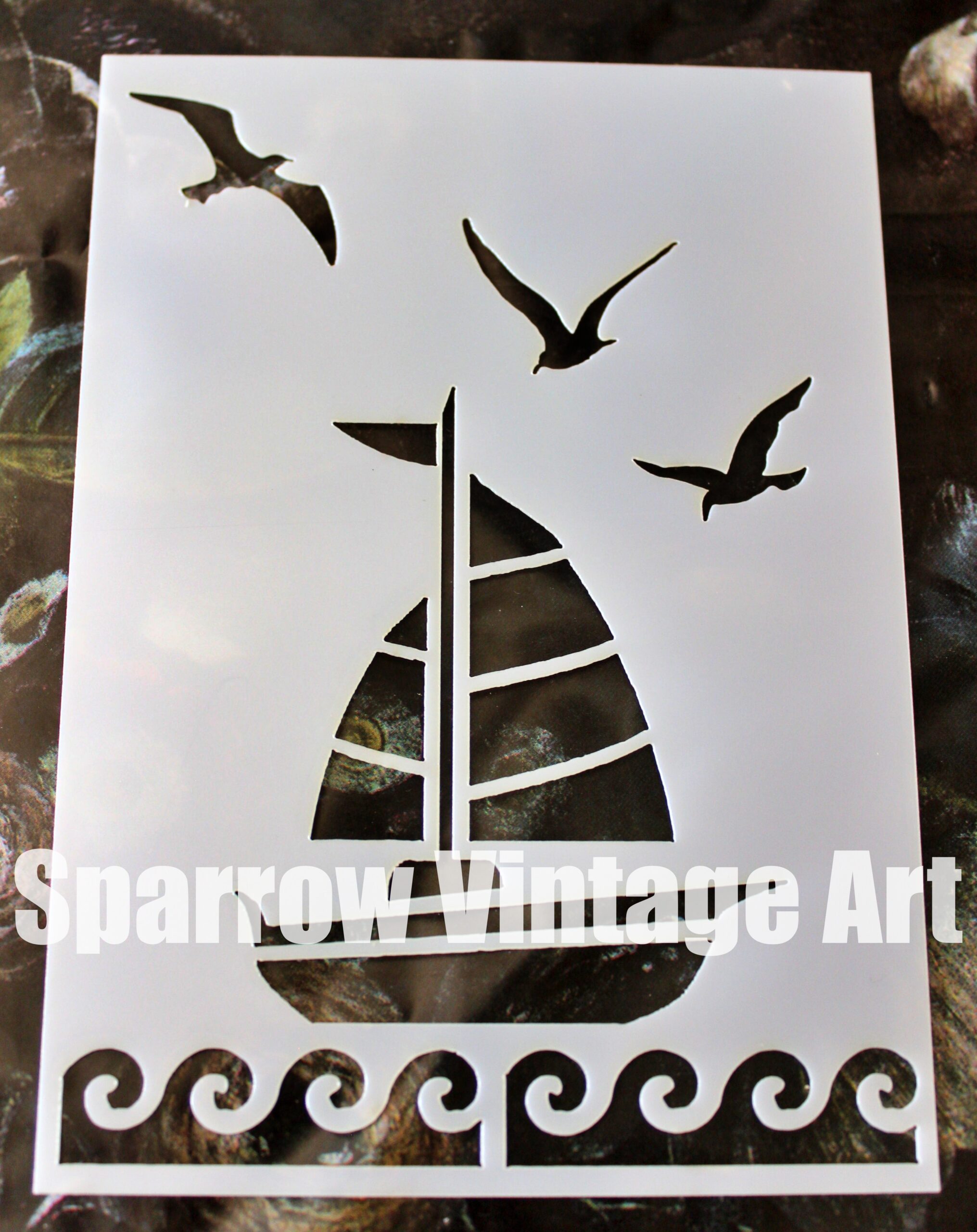 Yacht with birds – stencil