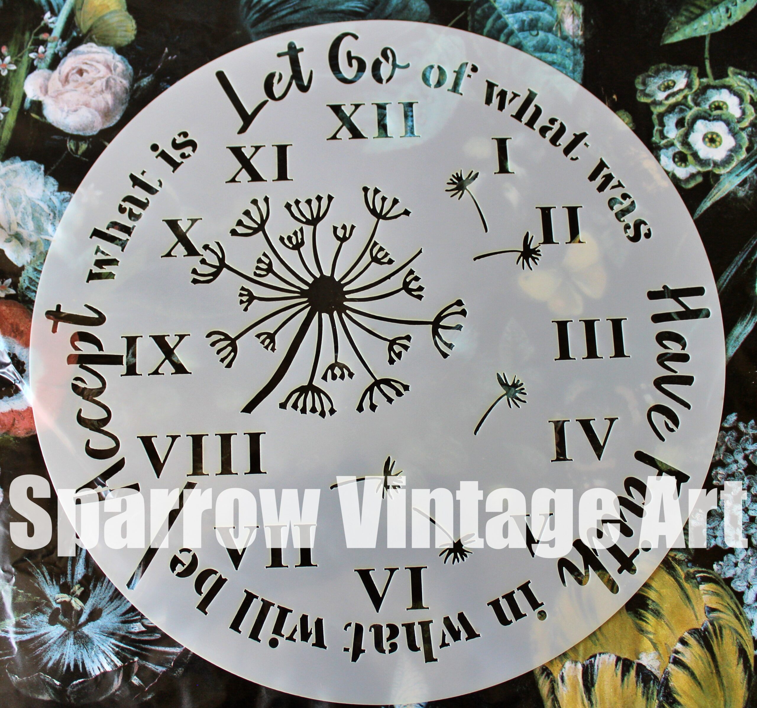 Clock stencil – Let go of what was, Have faith in what will be, accept what is